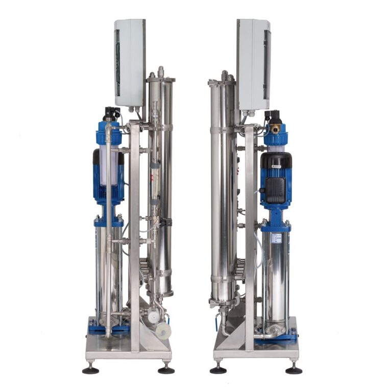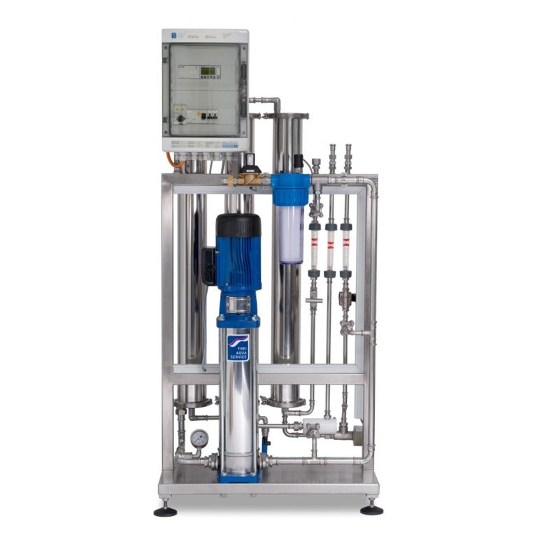 Les installations d'hypochromose de la ligne Fatro Duo sont des systèmes à deux étages avec un taux de rétention du sel et un rendement élevés. En option, un dégazage par membrane assure une faible conductivité et une qualité stable supplémentaire. Les systèmes Fatro Duo construits par Frei AquaService AG ont été développés pour une utilisation professionnelle, l'efficacité, la qualité, le respect de l'environnement et la facilité d'entretien. L'avantage est que ces installations peuvent être exploitées de manière extrêmement économique. Ce dernier point a également un effet positif sur la gestion de l'entreprise, car l'investissement est ainsi amorti plus rapidement. Les systèmes d'osmose inverse Fatro Duo sont conformes aux normes CE et dépassent les directives nationales.