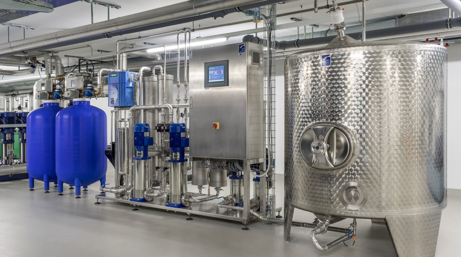 Je nach Grösse der Osmoseanlage erfolgt der Betrieb mit 230 V oder 400 V. Der Hauptverbraucher ist in der Regel die Pumpe, die das Wasser durch die Membranen drückt.
